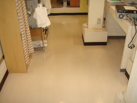 調剤薬局の床剥離洗浄・ワックス作業の様子
